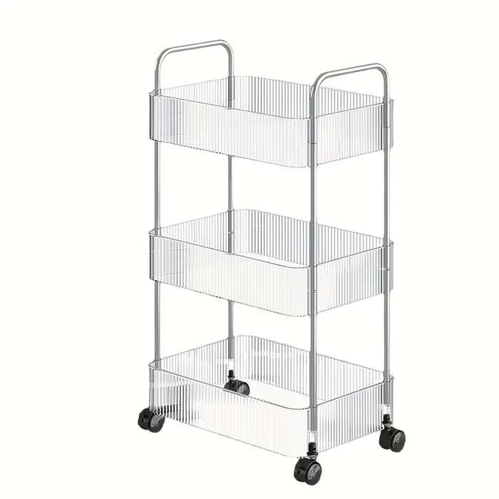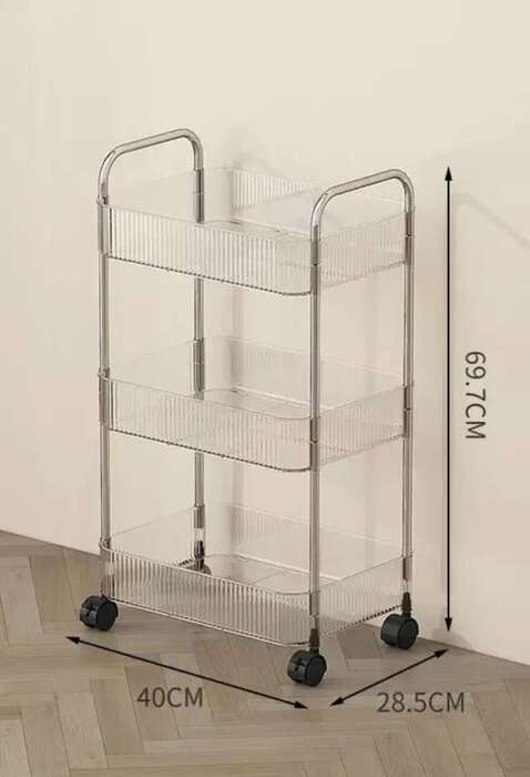 עגלת אחסון אקרילית שקופה 3 קומות עם גלגלים