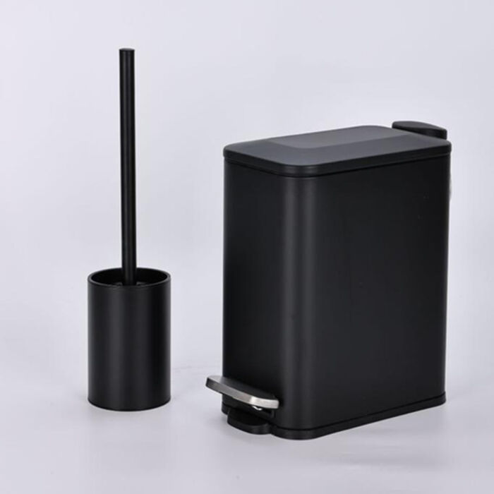 סט פח אשפה+מברשת שחור מט